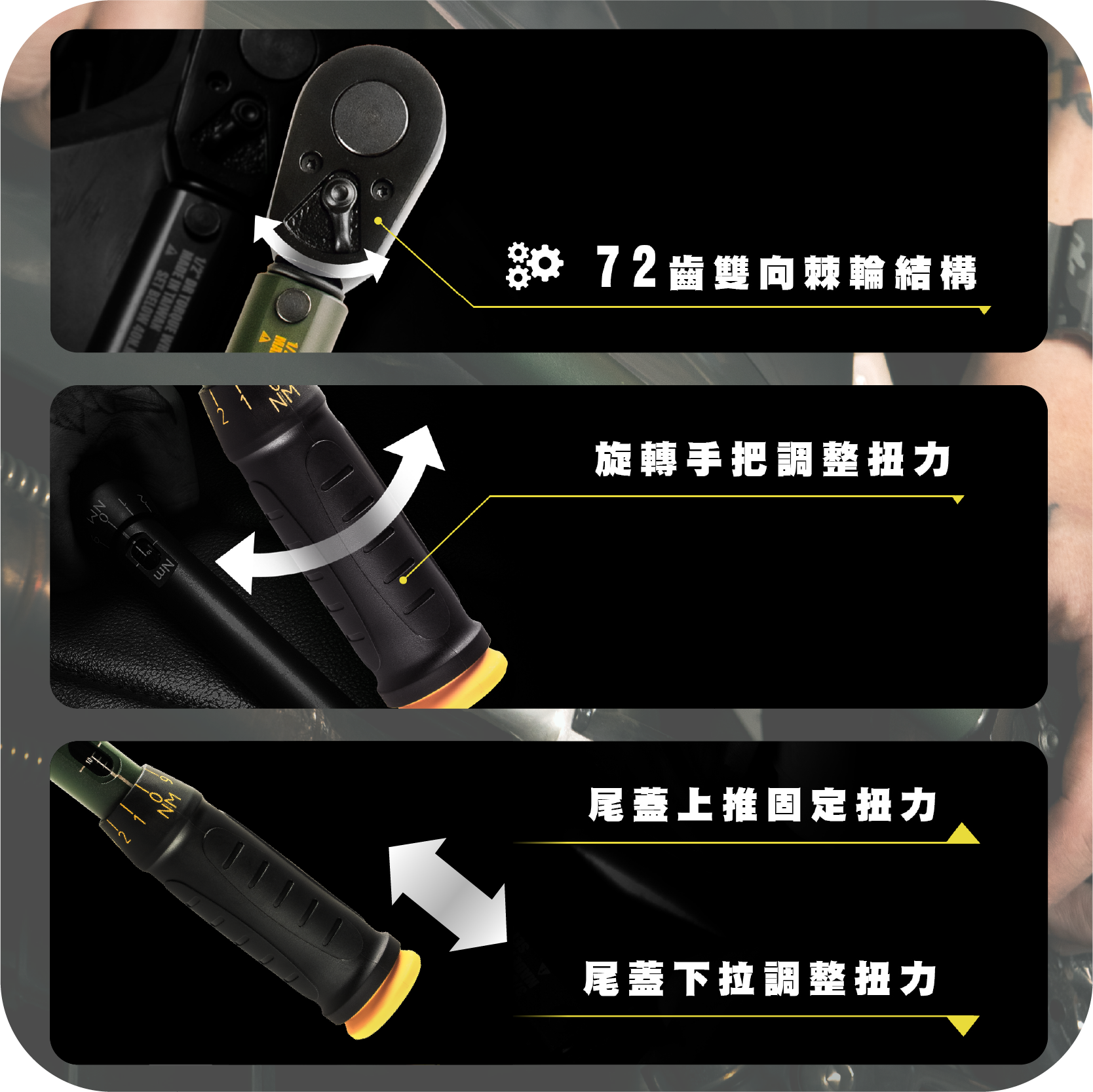 選購三分或四分扭力扳手請統一選擇宅配運送,因材積較長無法超商取件。 【Arsenal 愛森諾|精準鎖固扭力扳手】不再鎖太緊損壞螺絲! ➣ 簡單鎖固 ➣ 可調節扭力 ➣ 視窗顯示扭力 ➣ 台灣製造 軍風的外觀設計,喜歡硬派軍風的你絕對不能錯過!