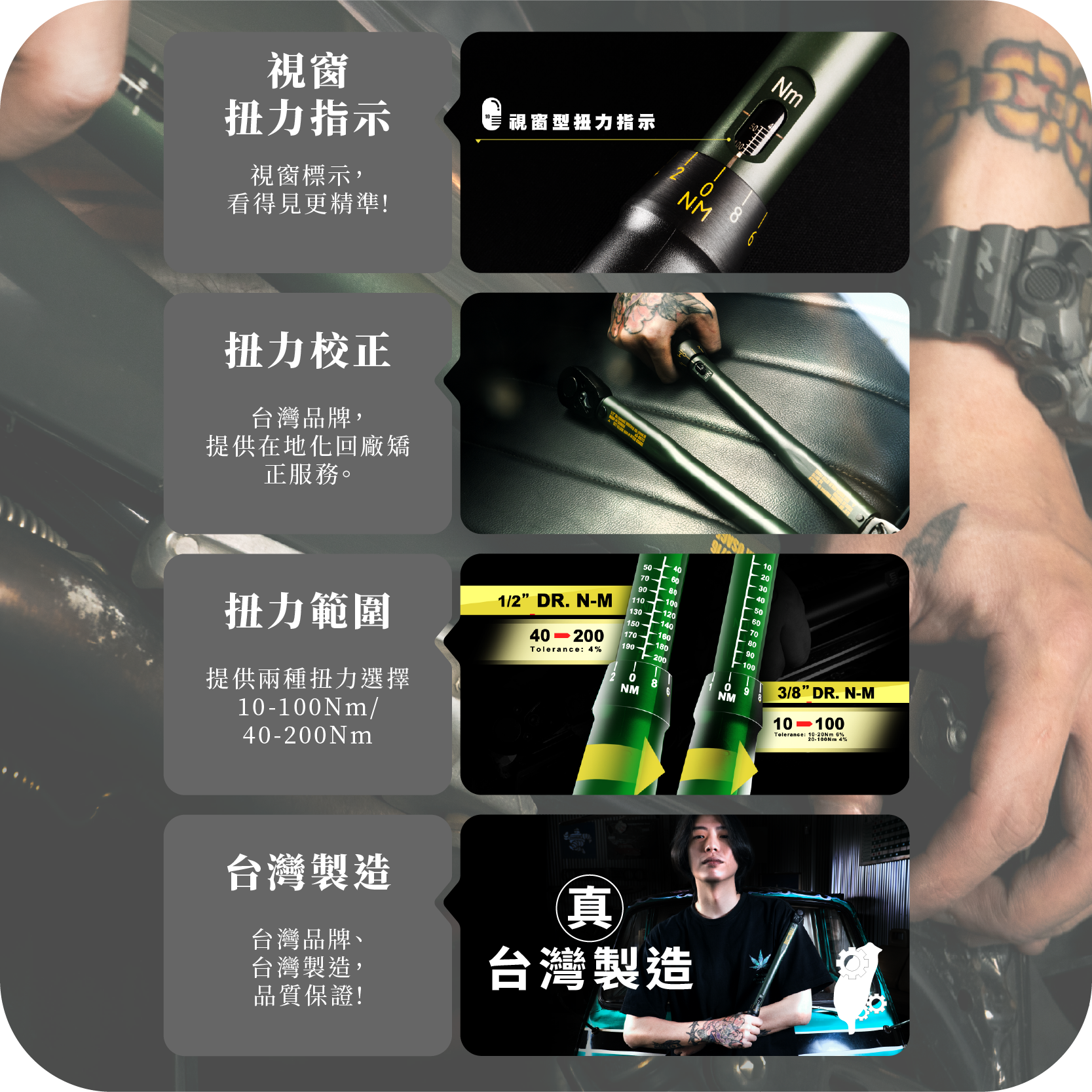 3/8Dr 10-100Nm(三分), 1/2Dr 40-200Nm(四分), 三分+四分扭力扳手組