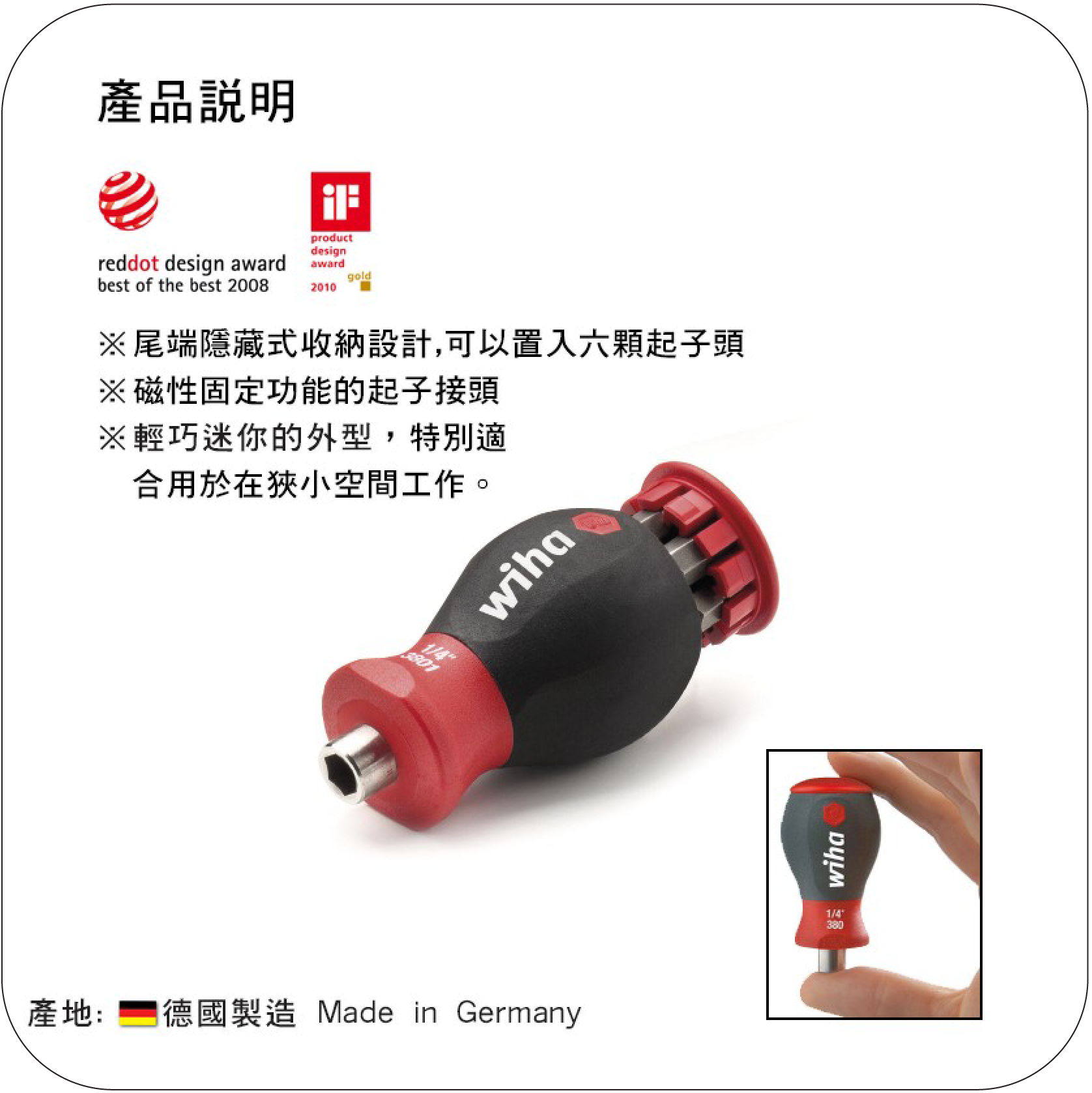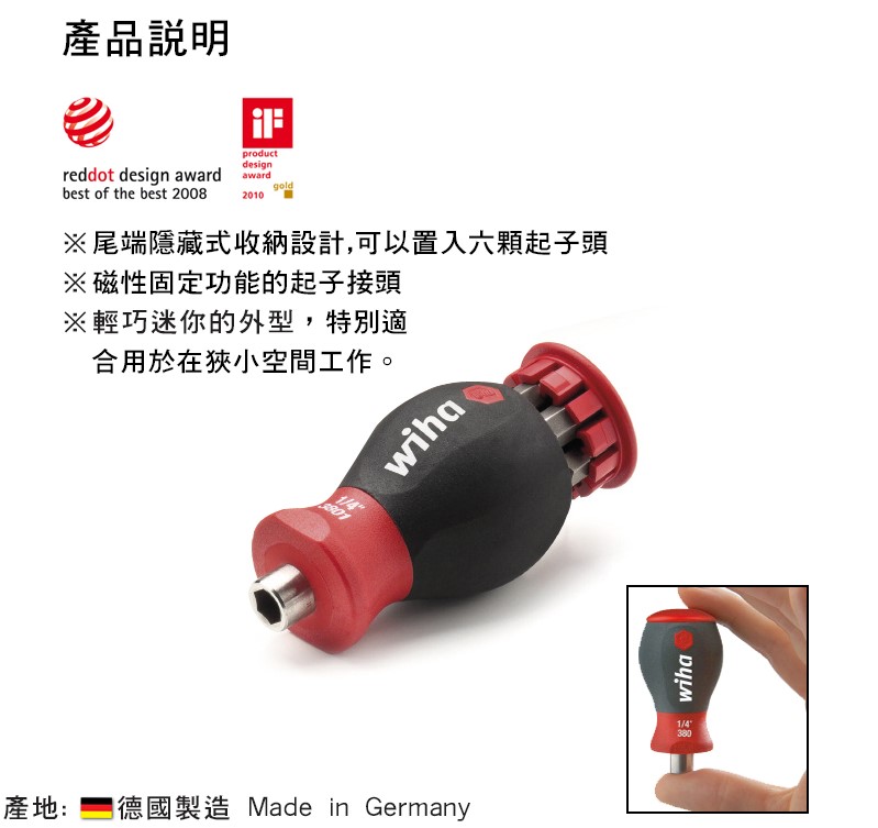 Wiha 迷你型 彈夾式 大頭起子 螺絲起子 380101