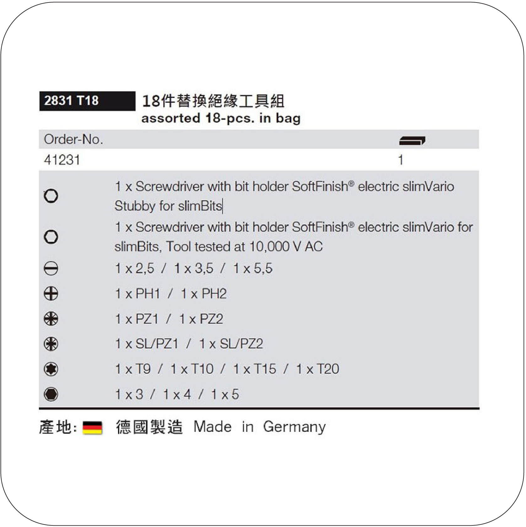 原廠品德國 Wiha 18件替換絕緣工具組 18件 工具組 替換絕緣 41231 2831 T18