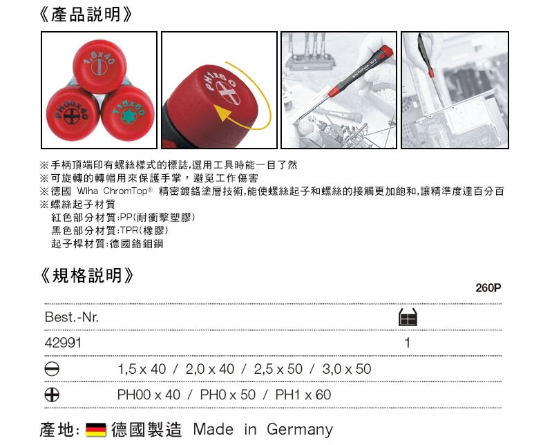 ** 德國原裝進口 Wiha 精密型十字一字小起子組 2260P K701