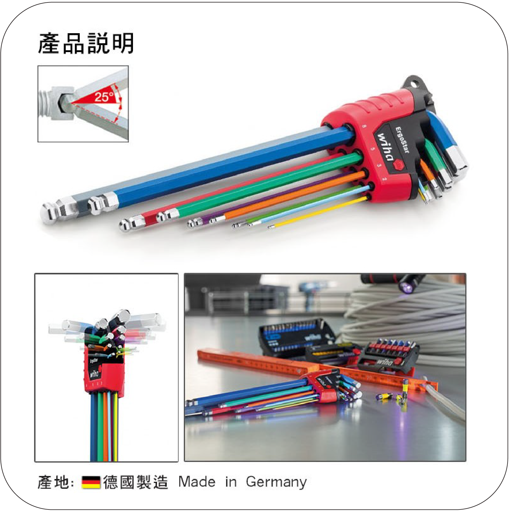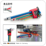 ** Chrome-Vanadium (鉻釩鋼) ** ISO 2936L ** 1.5-2-2.5-3-4-5-6-8-10mm (25度角) ** 表面UV塗料