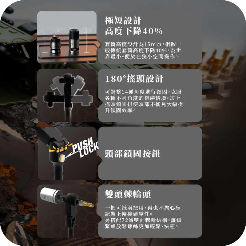 4. 雙頭棘輪頭:一把兩用,修繕全搞定
