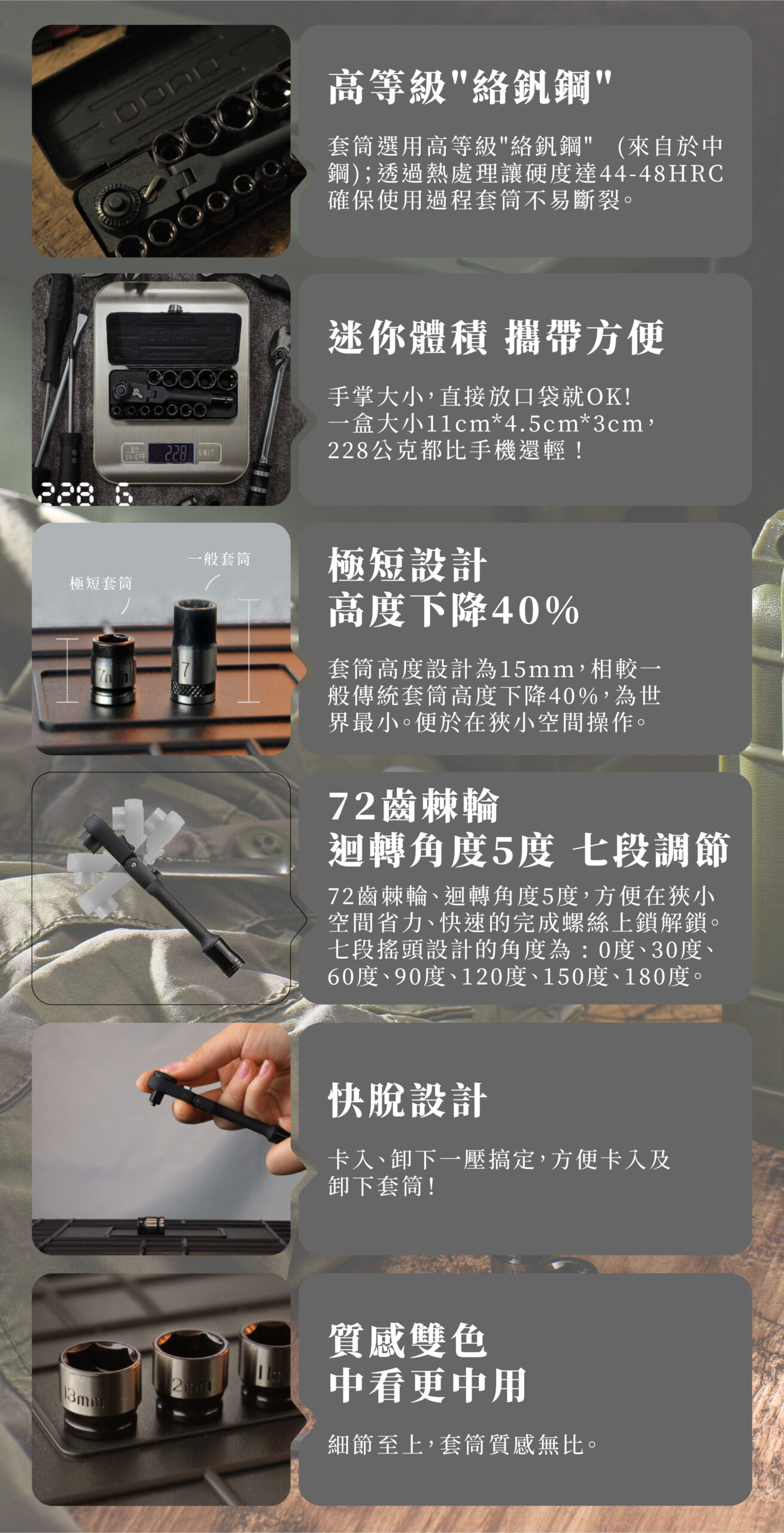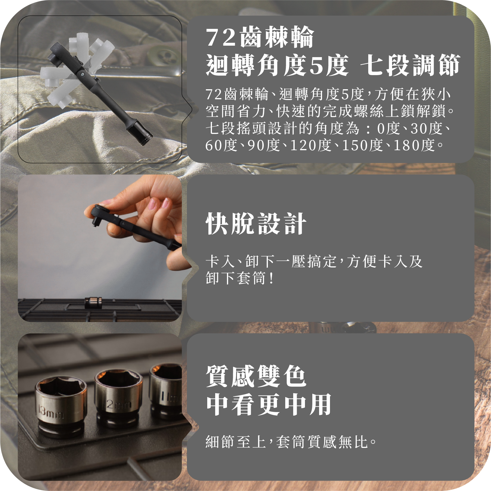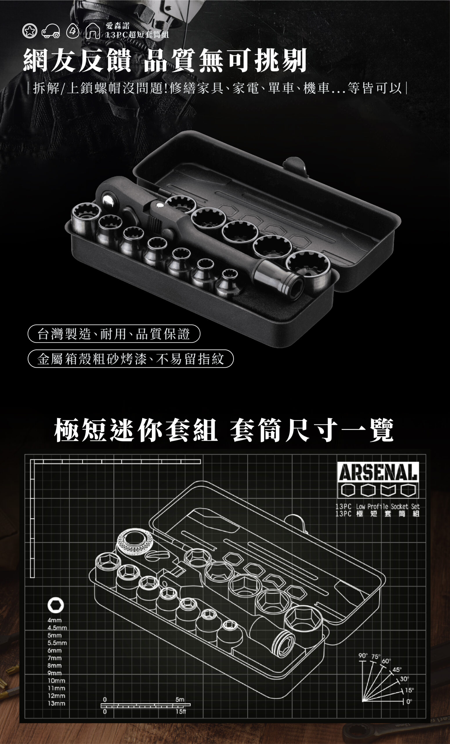 12個兩分套筒,應付日常家中、單車、機車、家電或是家具修繕。