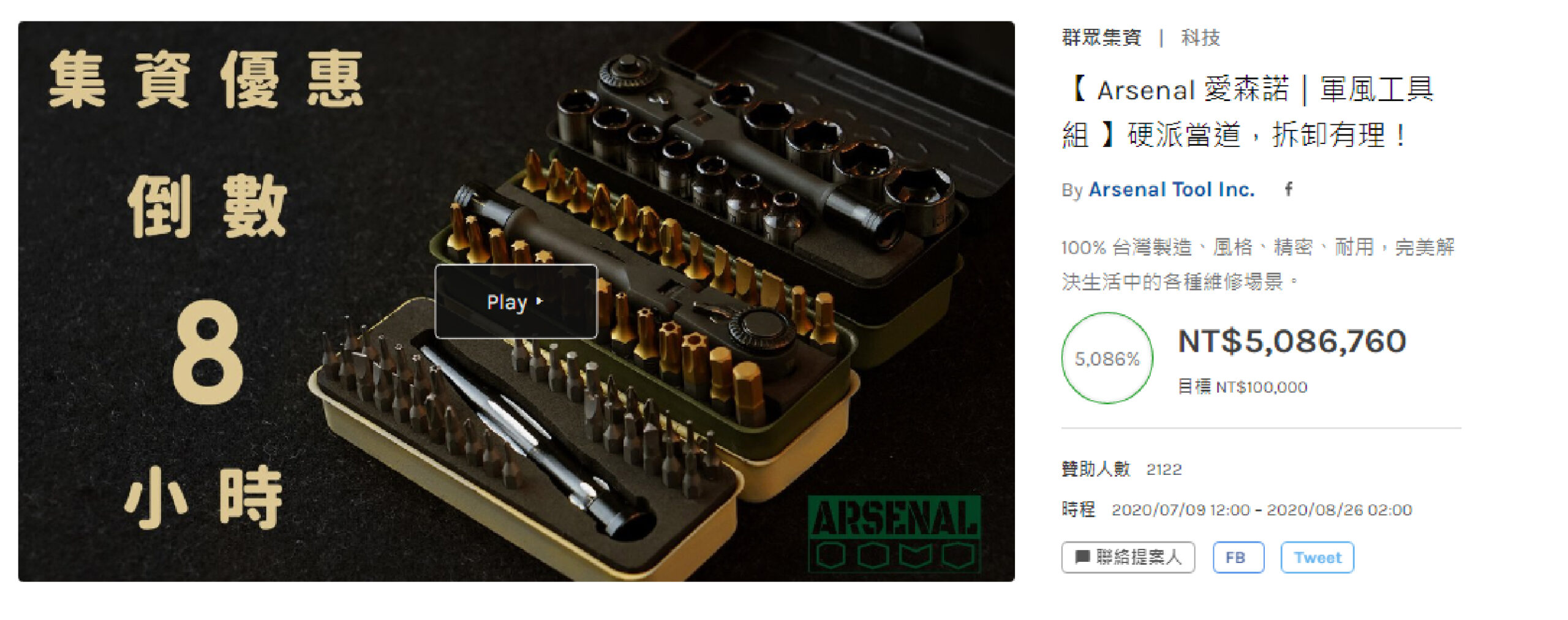 愛森諾工具在嘖嘖募資以六分鐘達標、超過2,000人的支持獲得佳績。