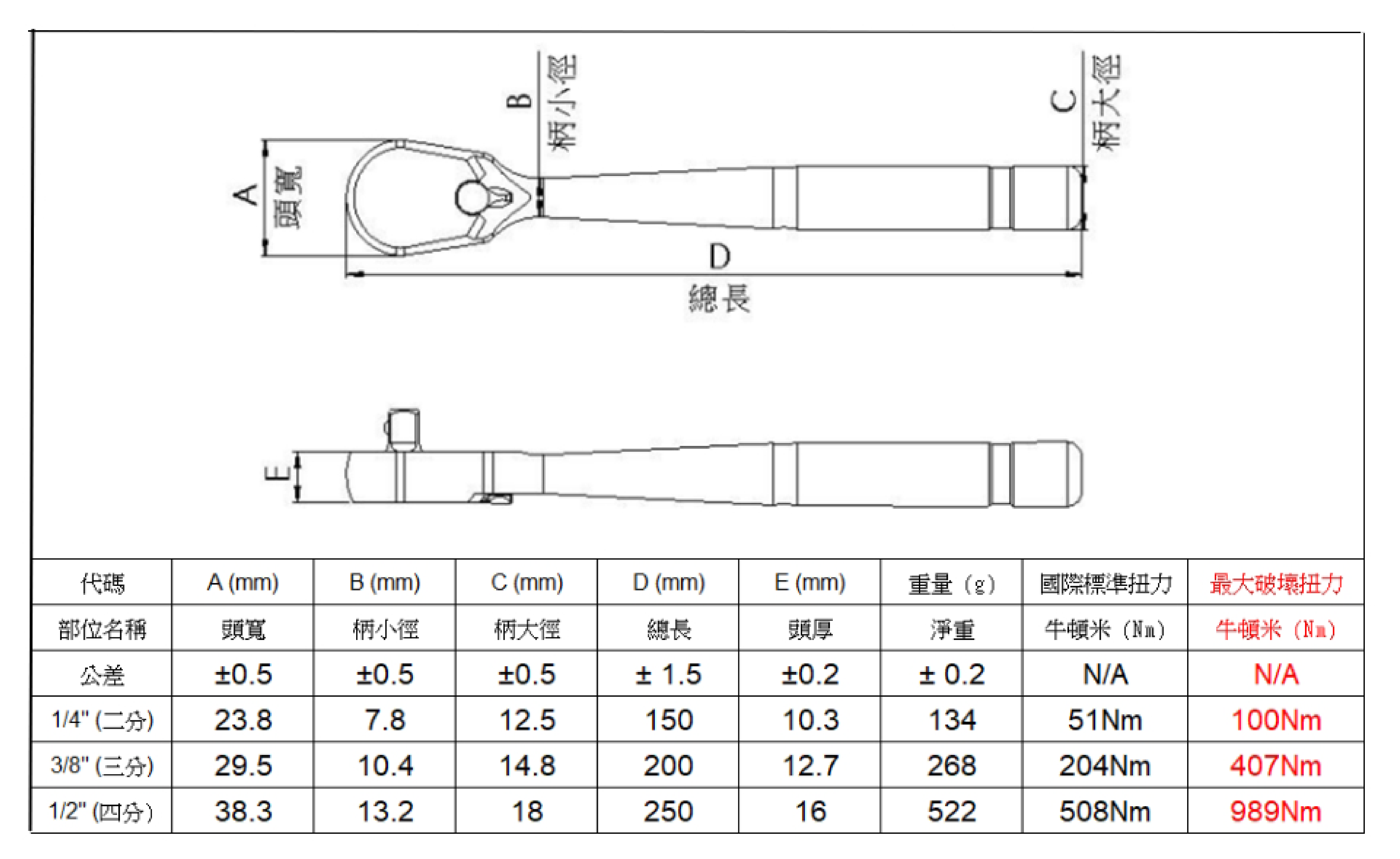 - 90齒綿密棘輪機構,創造出 4度的轉動角度。便利於在狹小空間內快速拆鎖螺帽。
