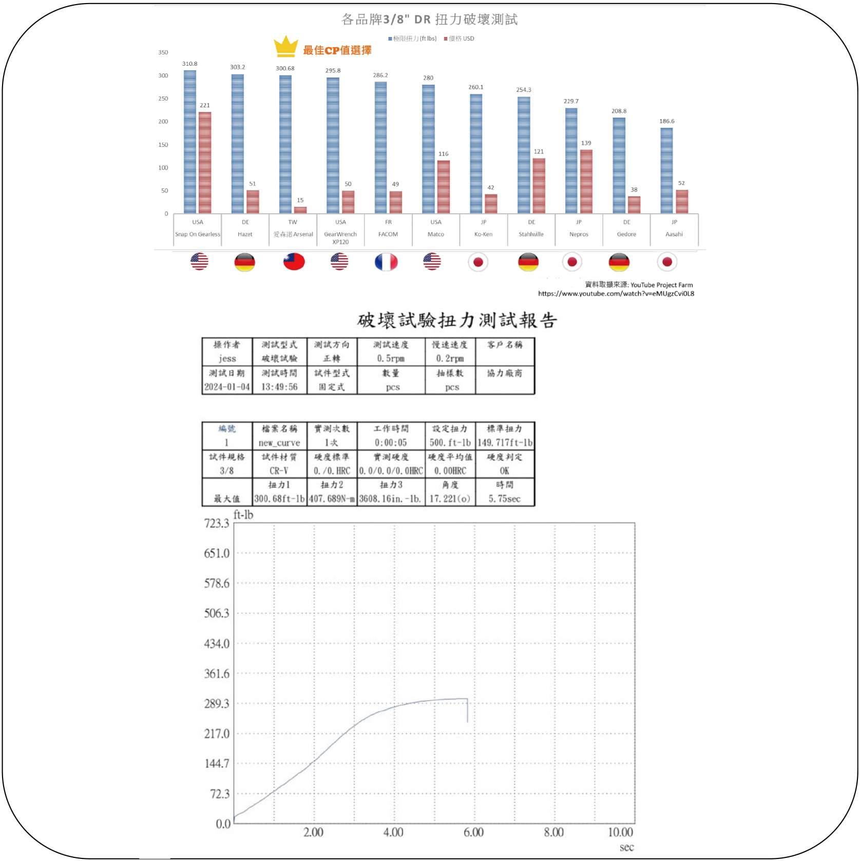 - 超扭力 Ultra Torq Tech 棘輪機構創造出高於標準值2倍的扭力。(實測破壞扭力高達407Nm)