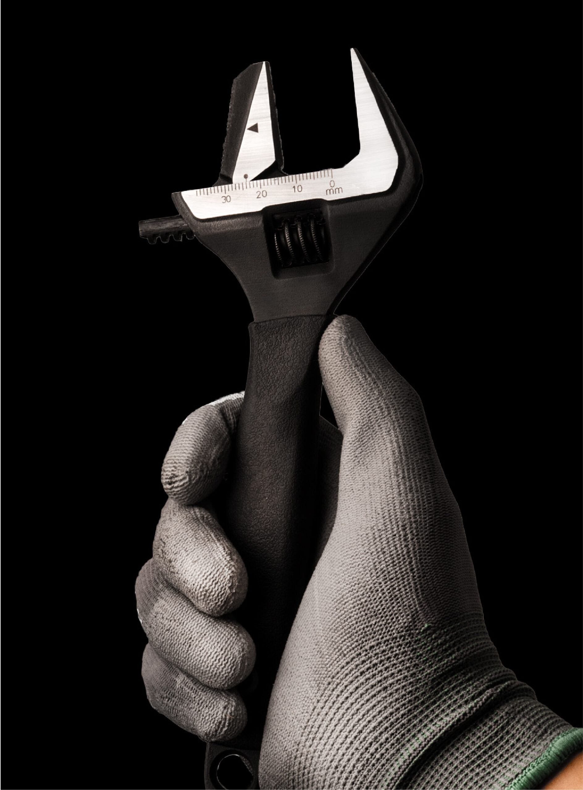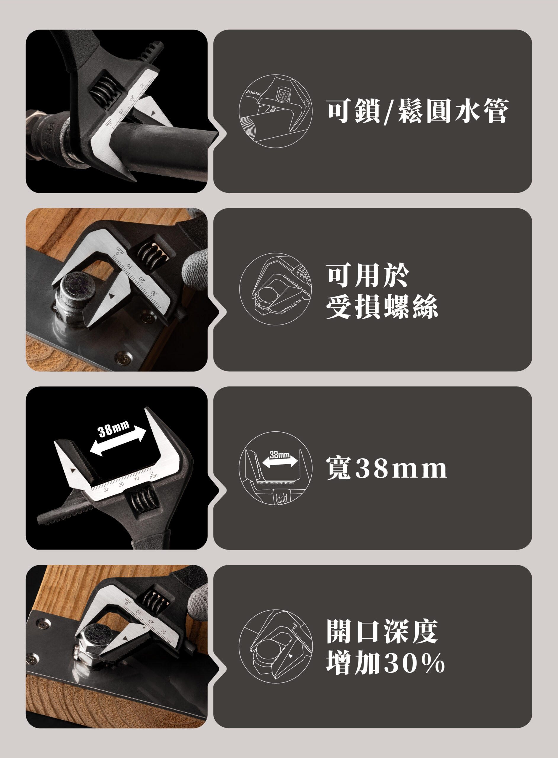 ★ 與一般活動扳手相比,開口寬50%、開口深度30%