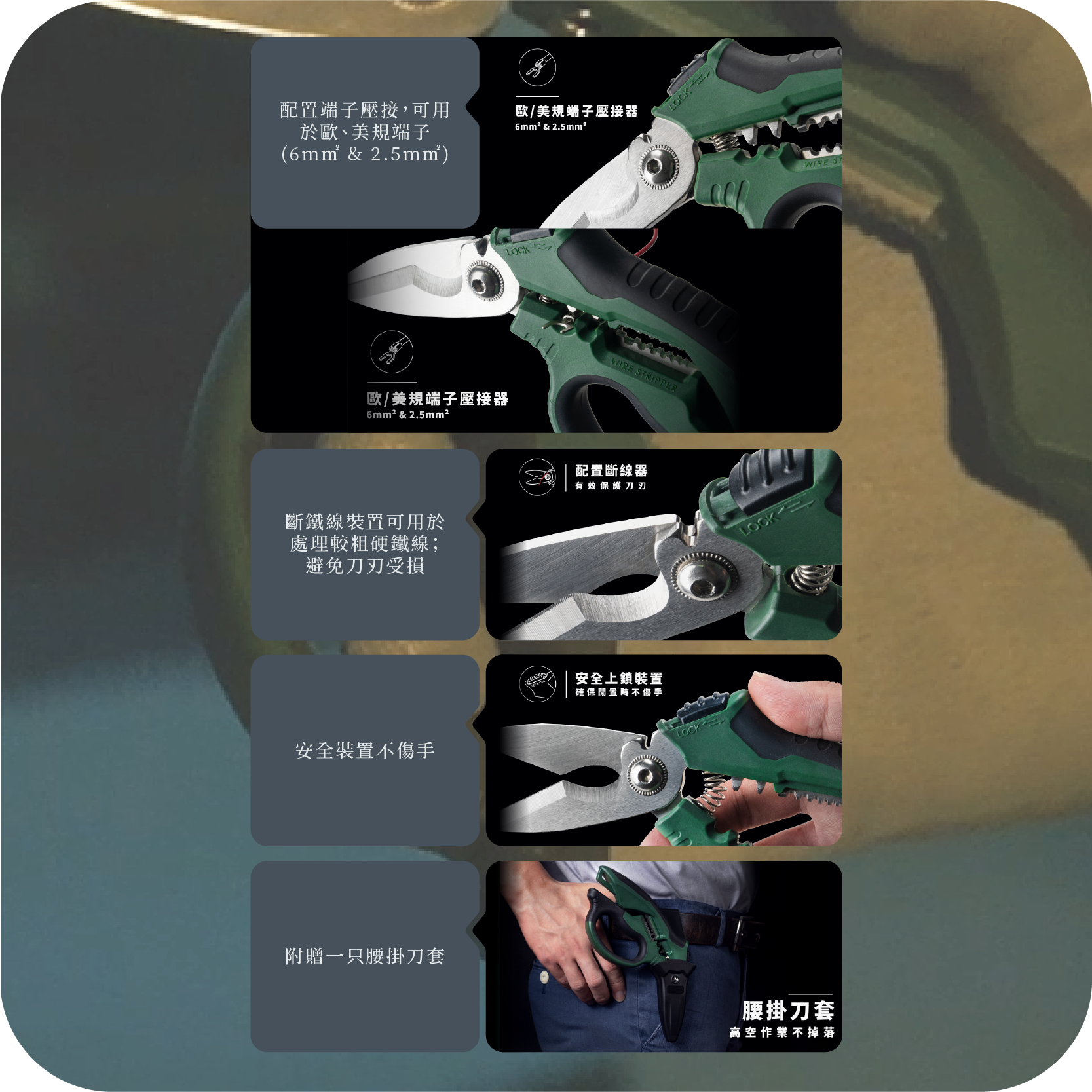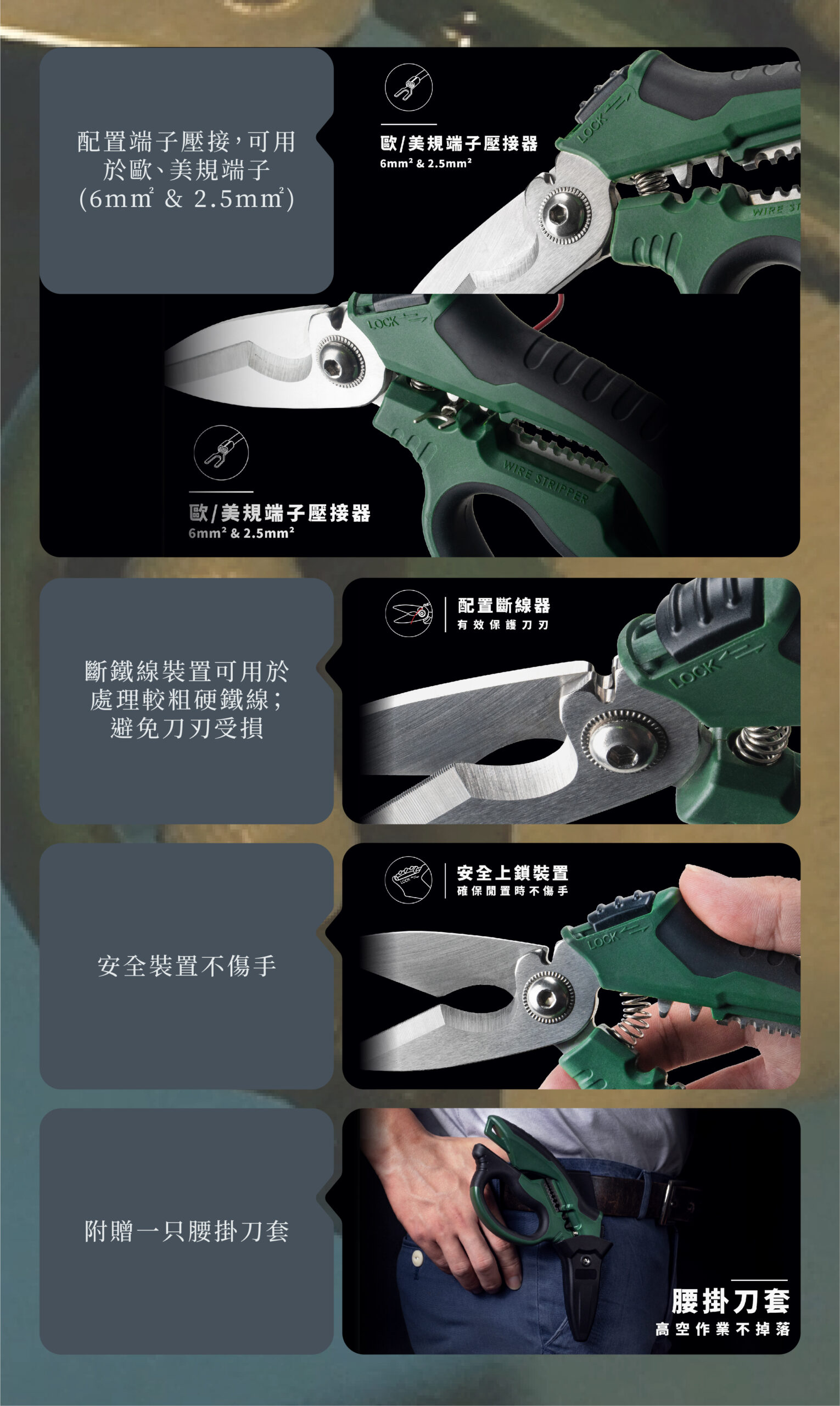 ★ 搭配剝線、壓端子、斷線裝置 / 腰帶掛式刀套