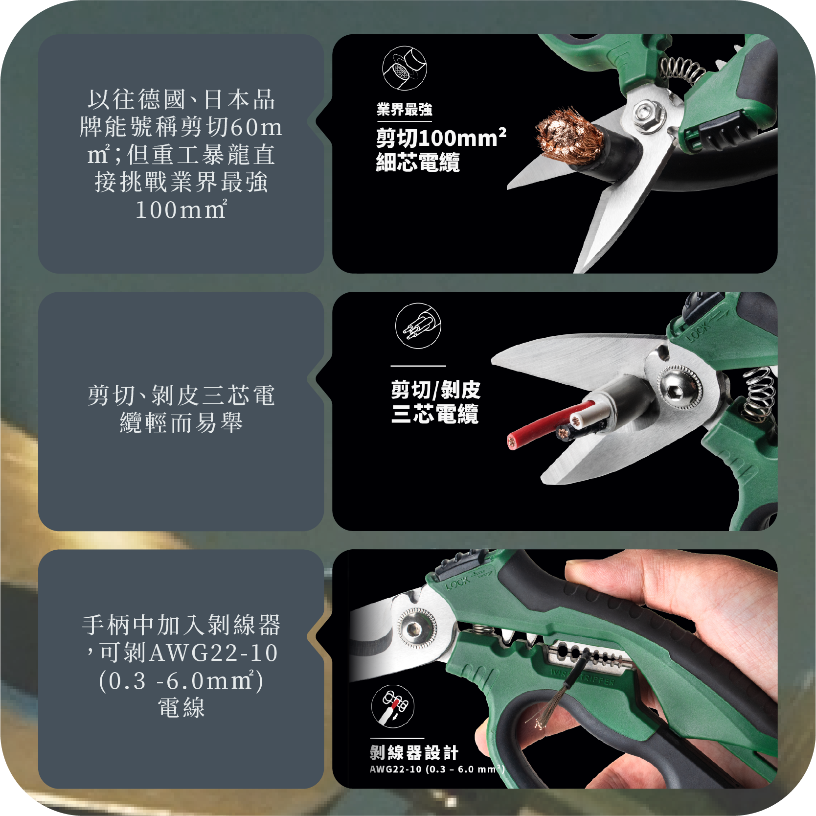 ★ 業界最強剪切力;可剪切100m㎡ 細芯電纜