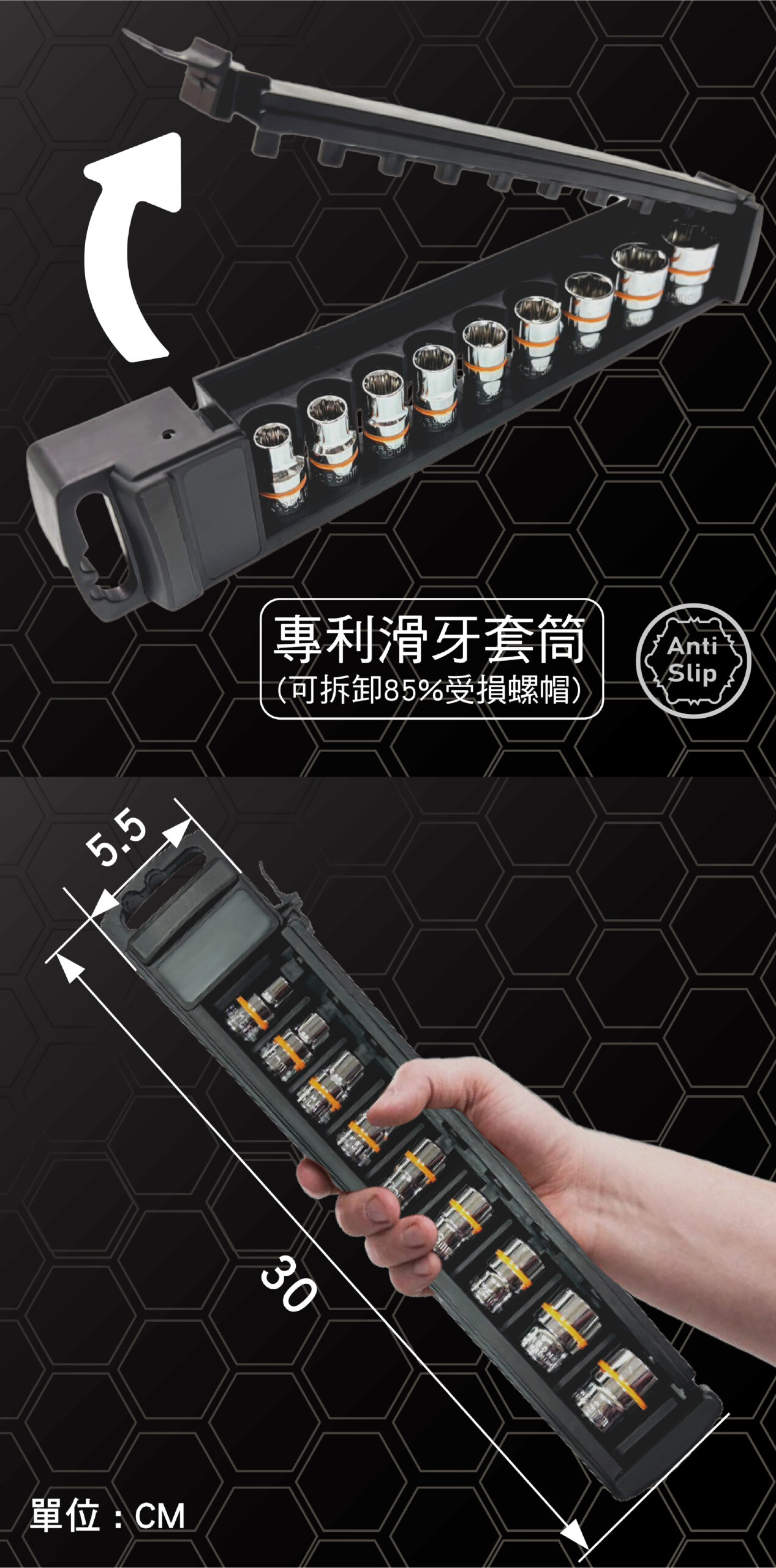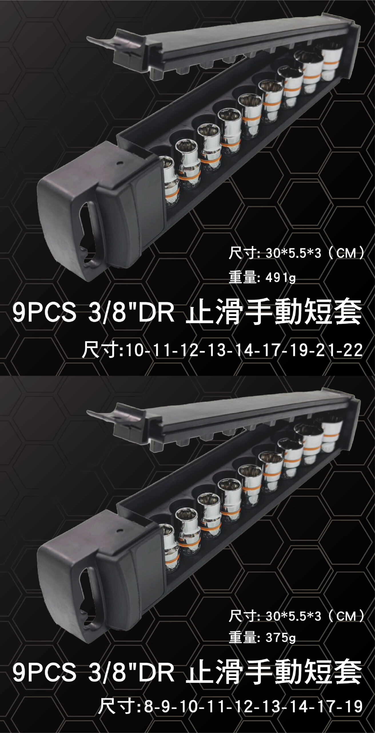 9PC 三分止滑套筒組(8-19mm), 9PC 三分止滑套筒組(10-22mm)