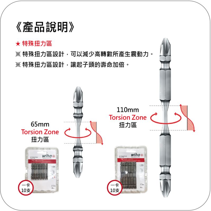原廠品 德國 Wiha 工業用 10支裝 65mm 110mm 雙頭起子頭 磁性 特殊扭力圈744191