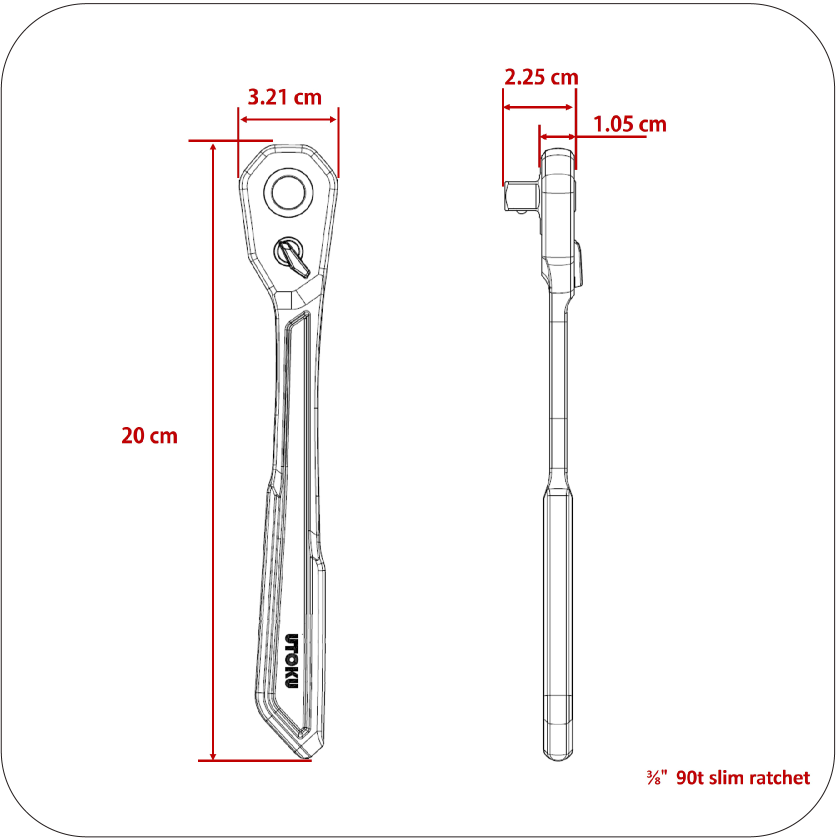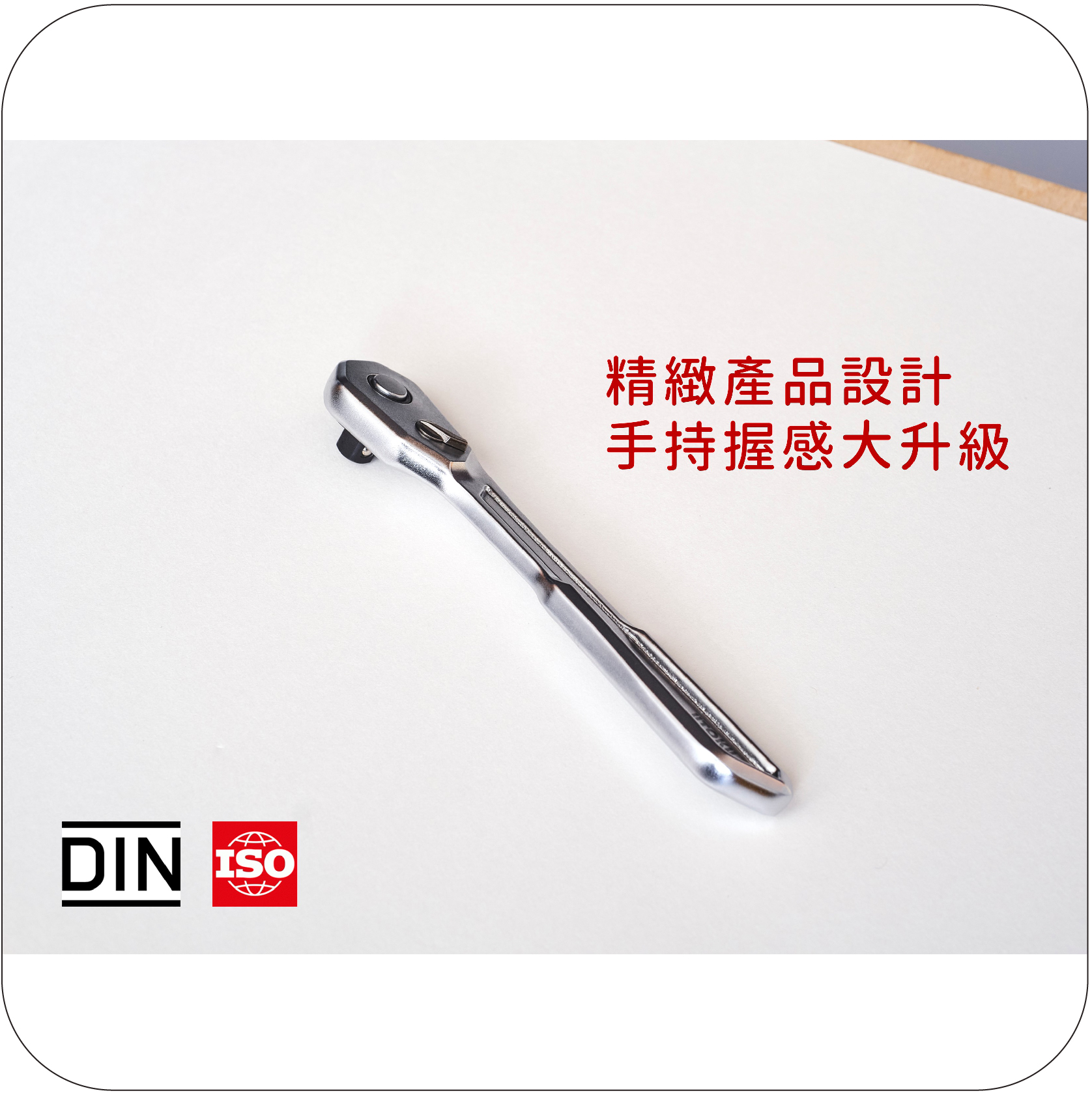 超薄型設計,帶來減少30%重量與減少30%體積的極致體驗,並且以高精密90齒棘輪,完成超越ISO/DIN國際測試標準。 <此產品只有扳手,套筒需另外選購>
