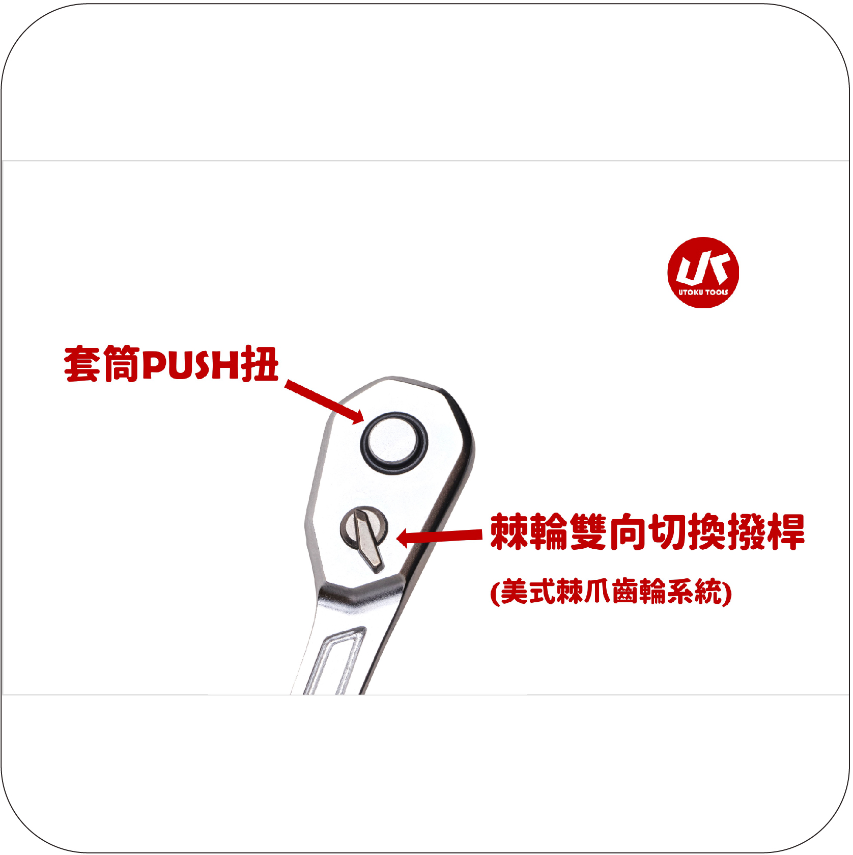 7. 扳手頭端結構有push鍵,套筒脫落好省力